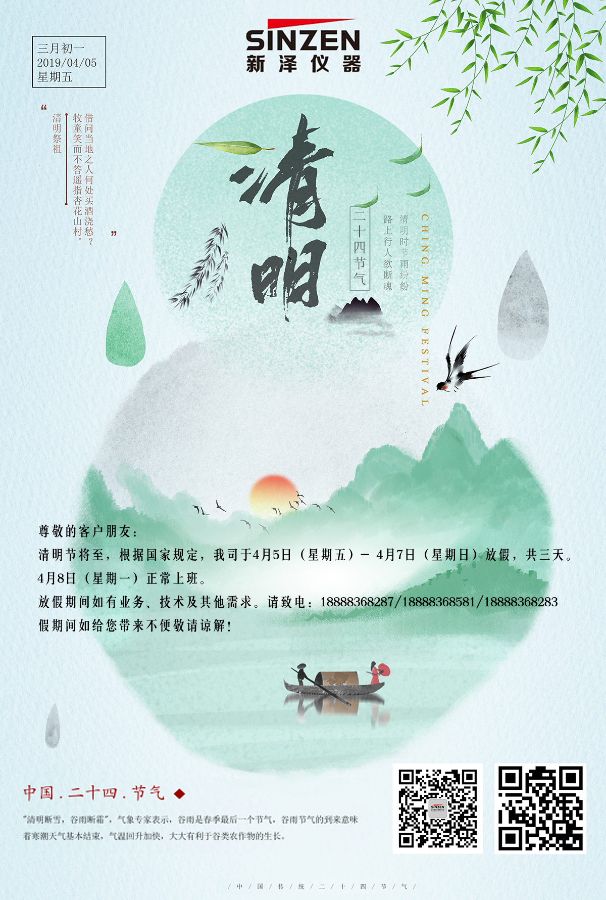 山東新澤儀器有限公司:清明放假通知(4.5-4.7)