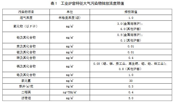 工業(yè)爐窯大氣污染物排放標(biāo)準(zhǔn)
