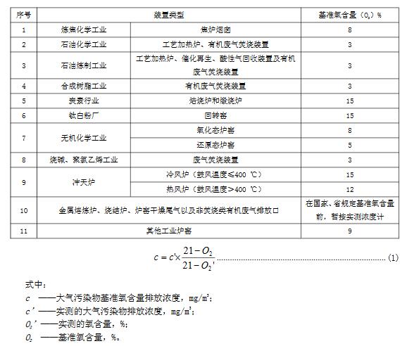 5.2大氣污染物基準(zhǔn)氧含量排放濃度折算方法實測的大氣污染物排放濃度,應(yīng)按表3和公式(1)折算為基準(zhǔn)氧含量排放濃度。國家和山東省規(guī)定了行業(yè)單位產(chǎn)品基準(zhǔn)排氣量的,按單位產(chǎn)品基準(zhǔn)排氣量進(jìn)行折算。