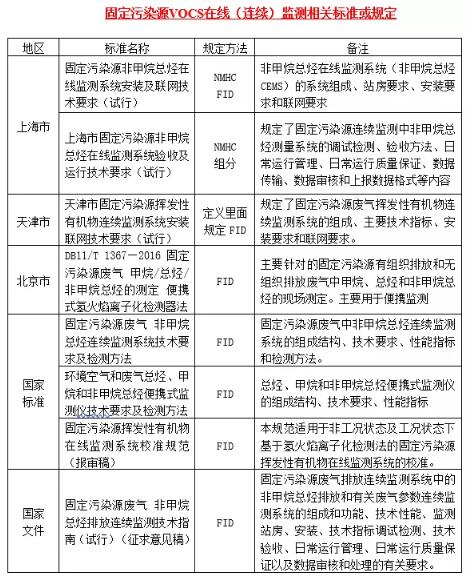 1)上海:《上海市固定污染源非甲烷總烴在線監(jiān)測系統(tǒng)安裝及聯(lián)網(wǎng)技術(shù)要求(試行)》、《上海市固定污染源非甲烷總烴在線監(jiān)測系統(tǒng)驗收及運(yùn)行技術(shù)要求(試行)》;