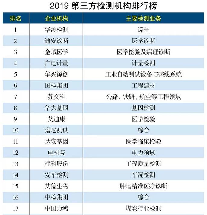 新澤小編盤點一下:2019年第三方檢測機構的50強