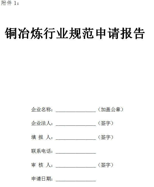 2.凡已建成投產(chǎn)1年以上(含1年)的銅冶煉企業(yè),均可依據(jù)《銅冶煉行業(yè)規(guī)范條件》申請審核。申請規(guī)范企業(yè)須編制《銅冶煉行業(yè)規(guī)范申請報告》(見附件1),并按要求提供相關(guān)材料,企業(yè)法人(或代表)、填報人和審核人須對申請材料的完整真實性負責并承擔相應(yīng)責任。