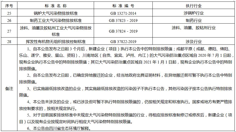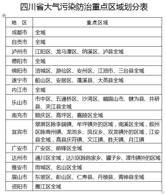 為加快我省大氣環境質量改善,打贏藍天保衛戰,根據《中華人民共和國大氣污染防治法》《四川省〈中華人民共和國大氣污染防治法〉實施辦法》《四川省打贏藍天保衛戰實施方案》等相關規定,決定在我省大氣污染防治重點區域執行顆粒物、二氧化硫、氮氧化物和揮發性有機物等大氣污染物特別排放限值。