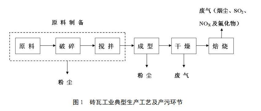 圖 1 磚瓦工業典型生產工藝及產污環節