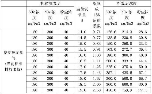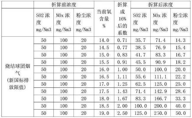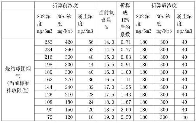 4)對于帶式焙燒機而言,濃度按氧含量16%折算并不科學,因為帶式焙燒機的排氣量包括了冷卻廢氣,而燒結(jié)機的廢氣并沒有包括環(huán)冷廢氣。帶式焙燒機應該按18.5%折算為科學。