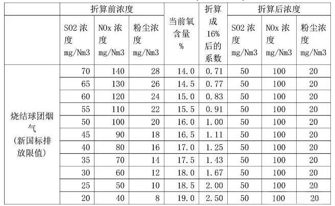 《鋼鐵燒結(jié)、球團工業(yè)大氣污染物排放標準》(GB28662-2012)修改單規(guī)定的基準含氧量,自2017年10月1日起執(zhí)行。根據(jù)編制說明,燒結(jié)和球團焙燒煙氣基準含氧量定為16%。則鋼廠燒結(jié)和球團實測焙燒煙氣的大氣污染物排放濃度,應換算為16%條件下的排放濃度,并以此作為判定排放是否達標的依據(jù)。